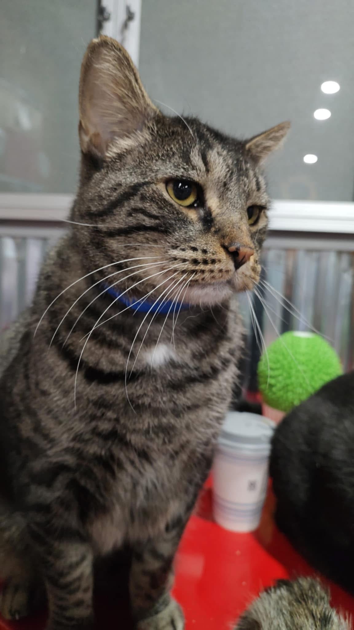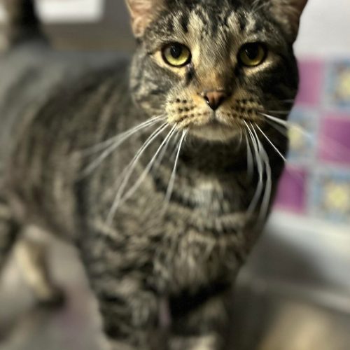 He was rumored to have marked in his previous home, but we’ve not seen any evidence of this since he been in our care. We believe this was due to stress from being around dogs. When in the company of other cats he tends to take a submissive role and is very comfortable.