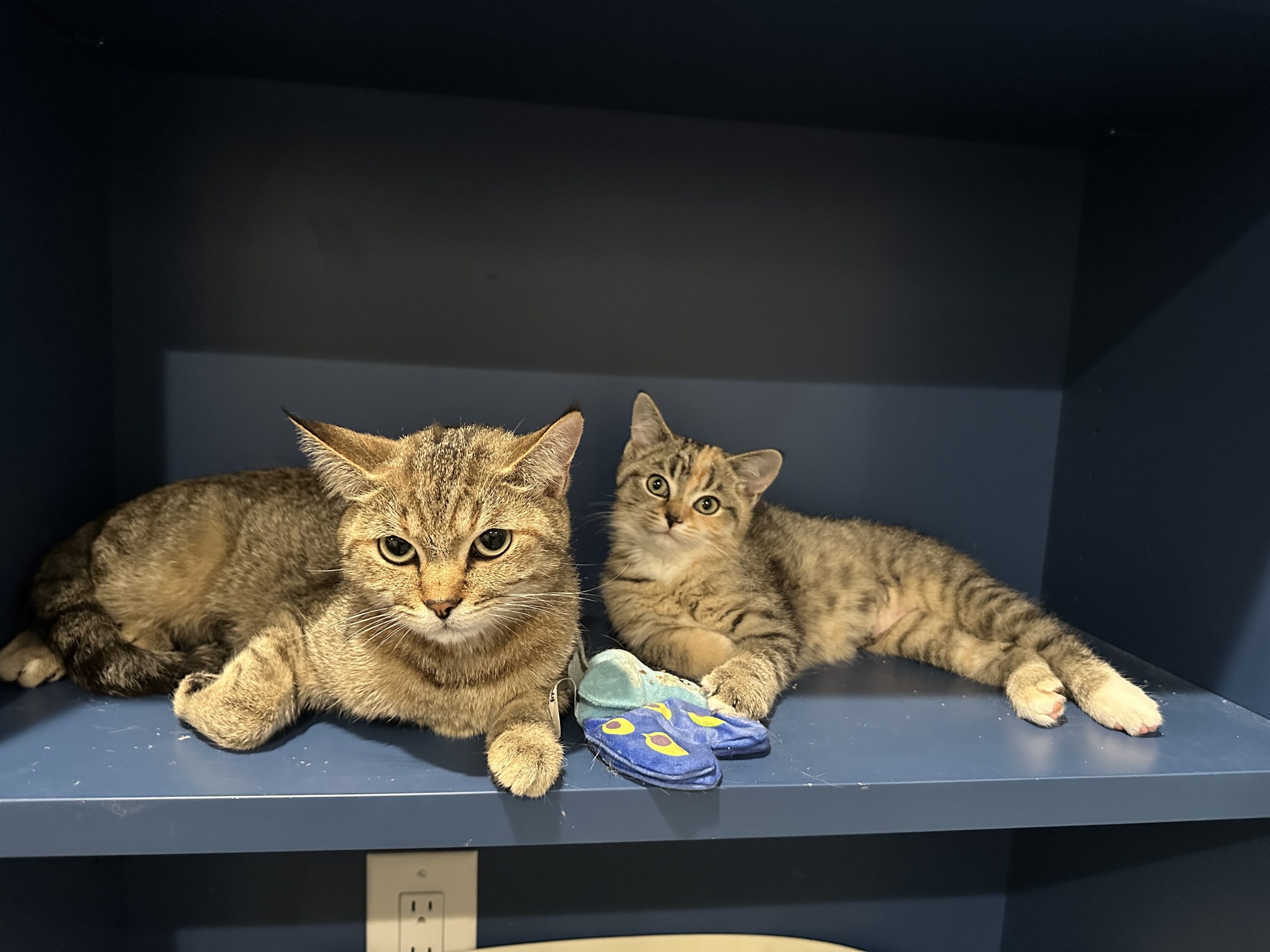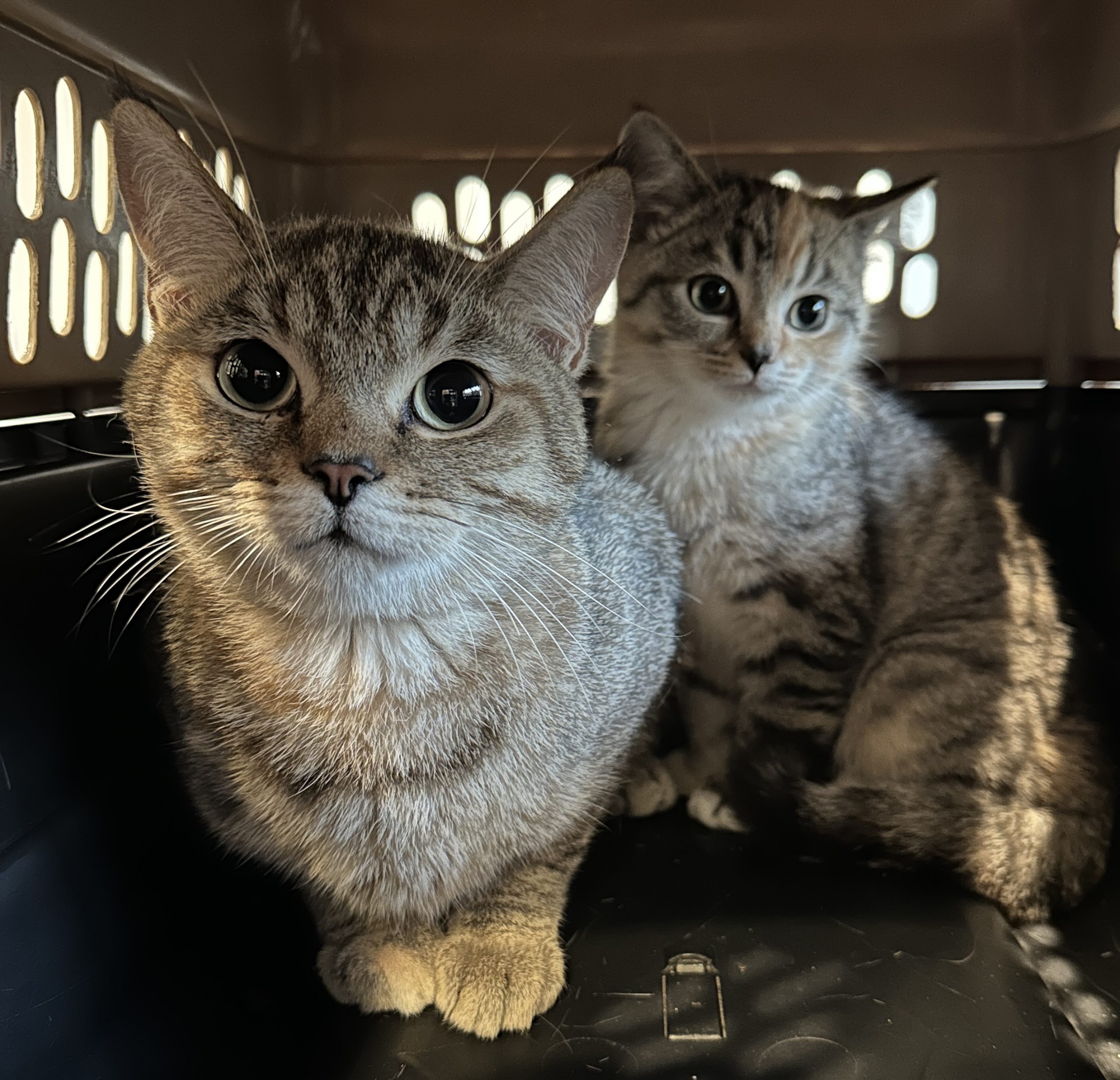 Dusty and her daughter, Lint, were dropped in front kg the Sanctuary one evening. Volunteers quickly scooped them up and brought them inside.