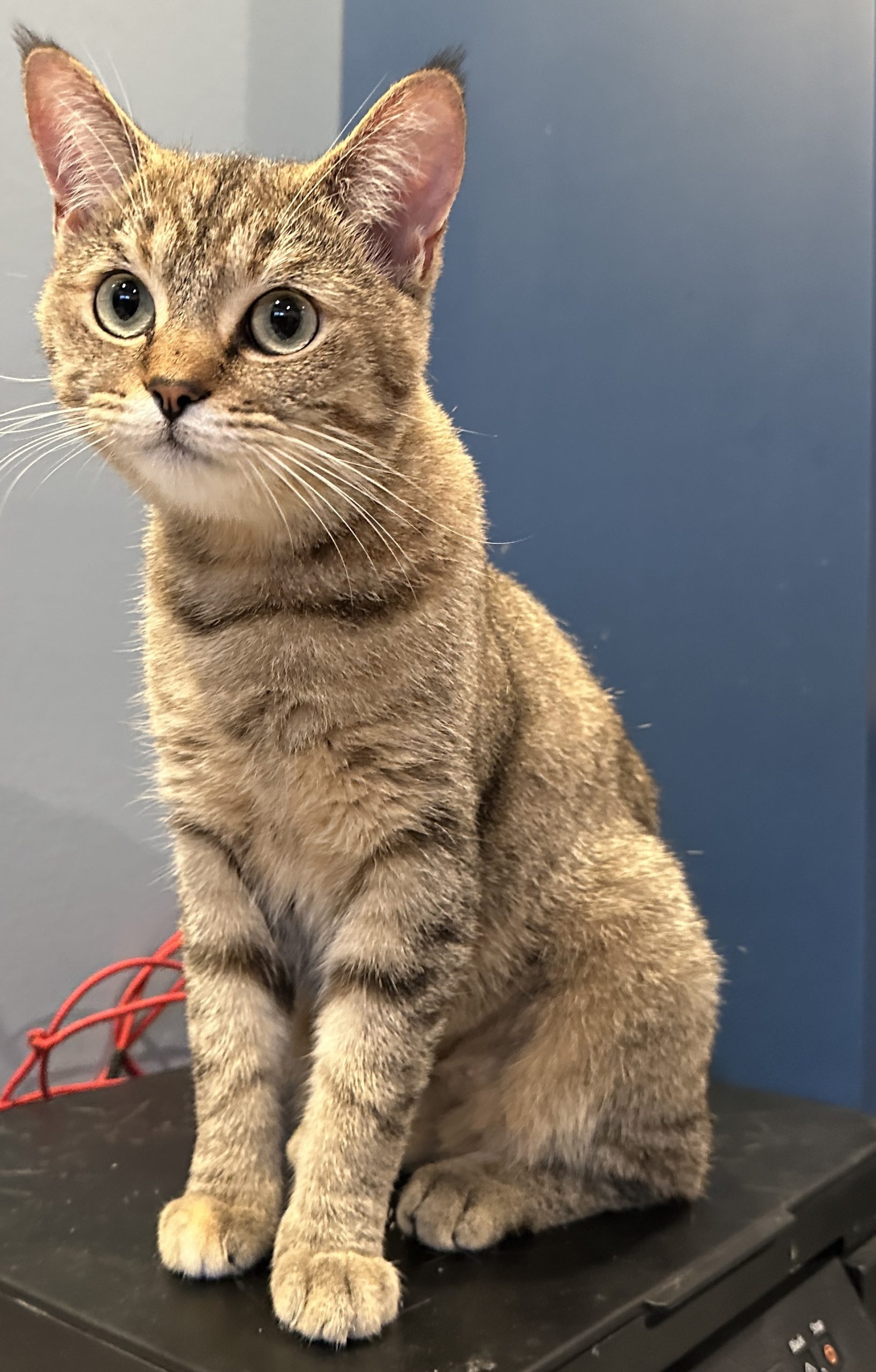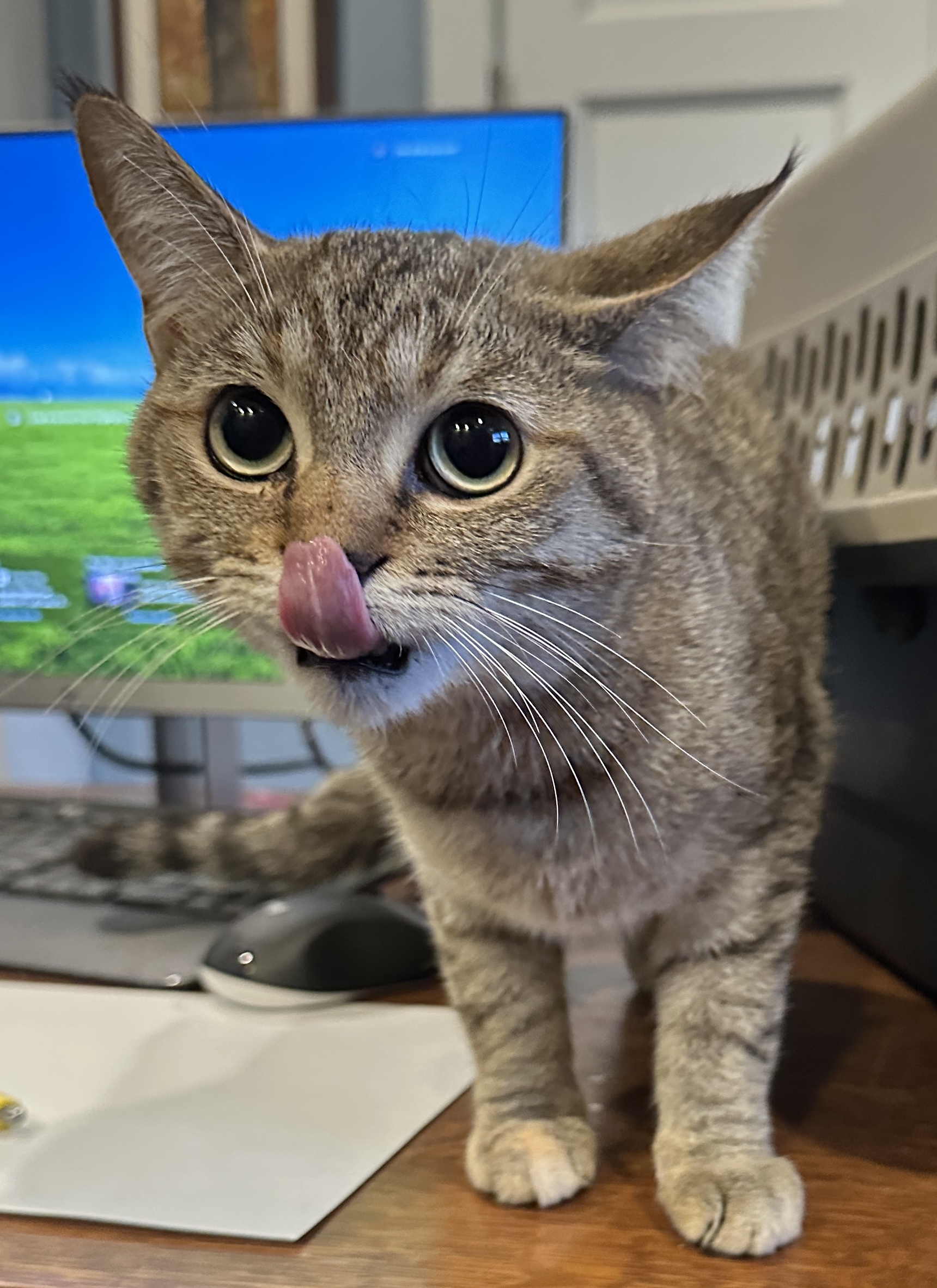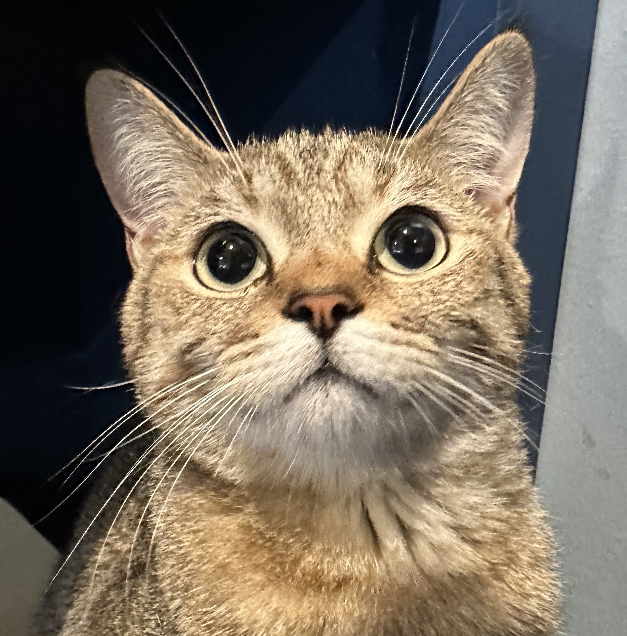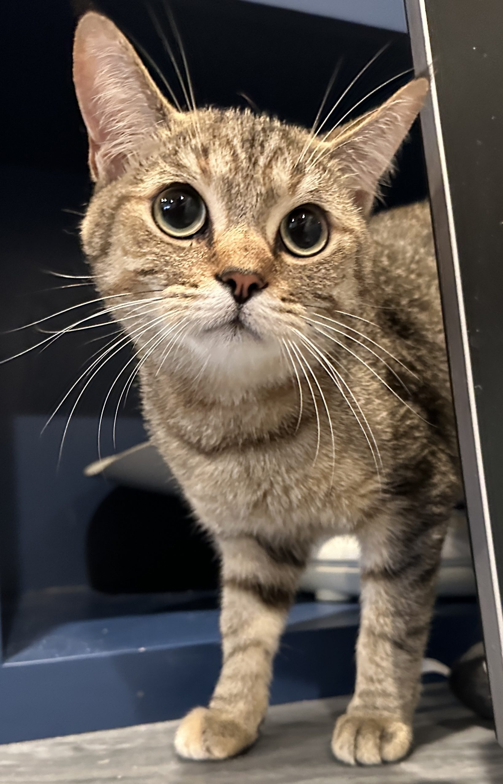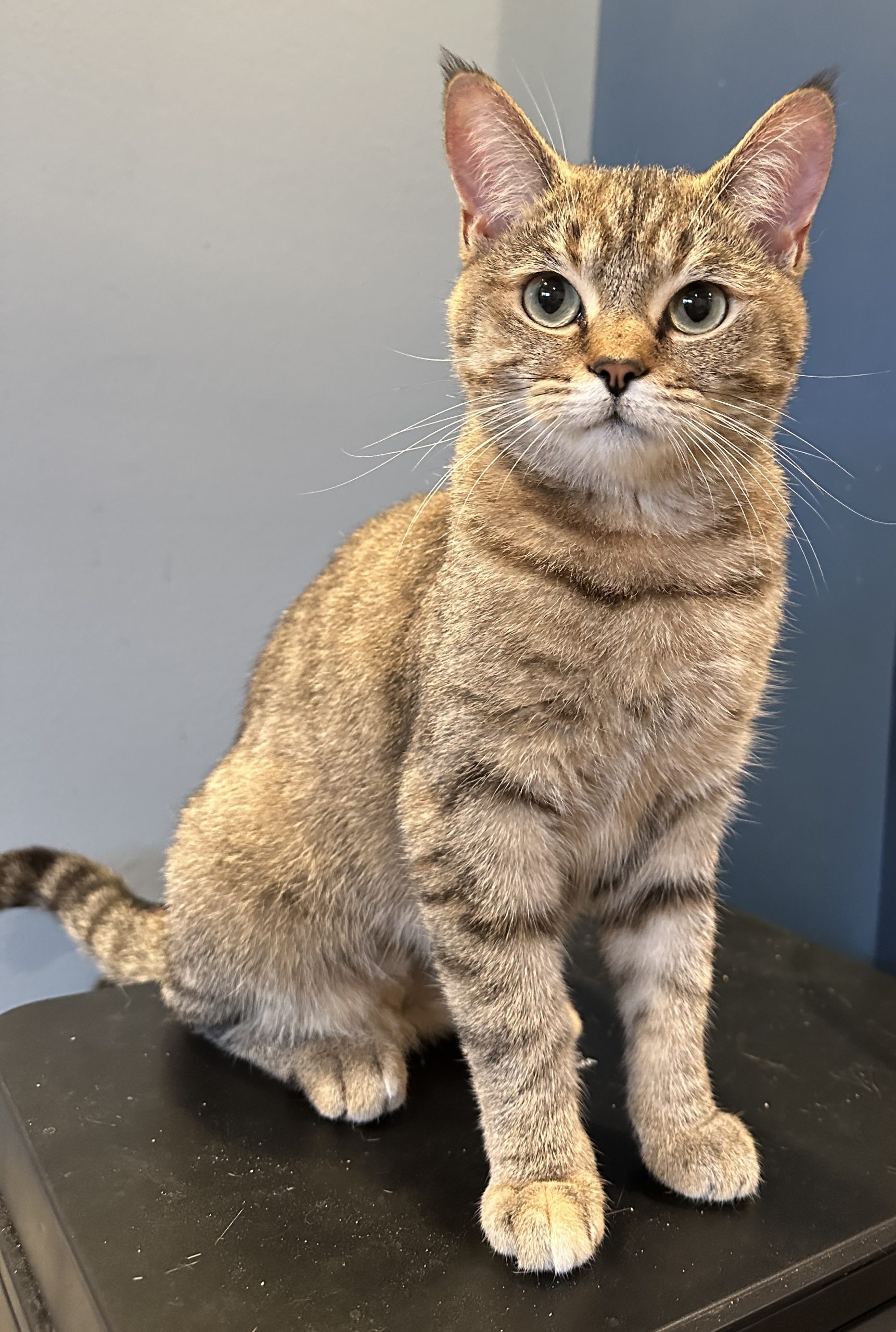 Dusty loves cuddling with Lint, but she’s not as comfortable around other cats. She will coexist with them, but if they get to close she will give them a growl and hiss as a warning to stay back. She never actually backs up her vocal threats with any physical action.