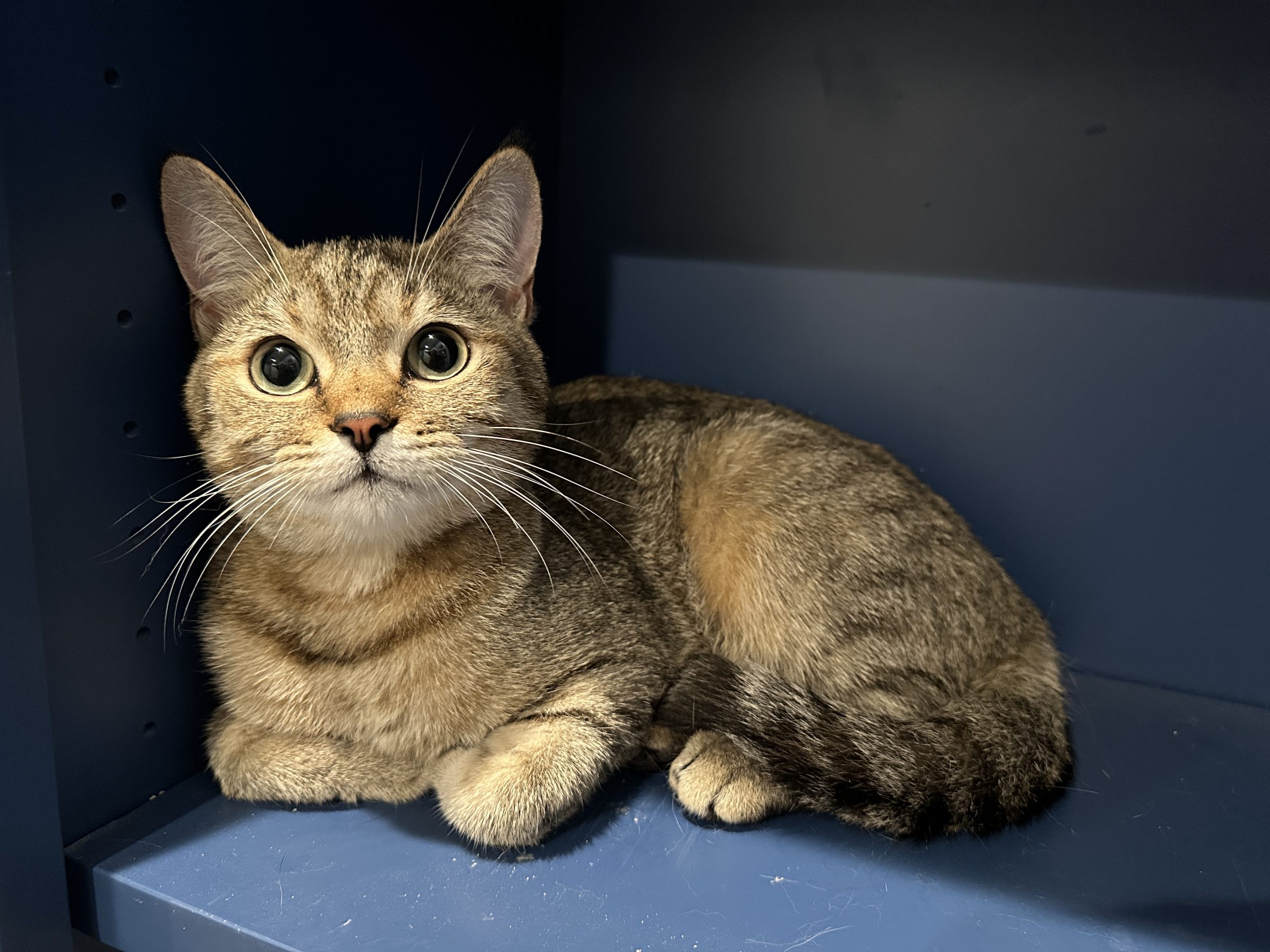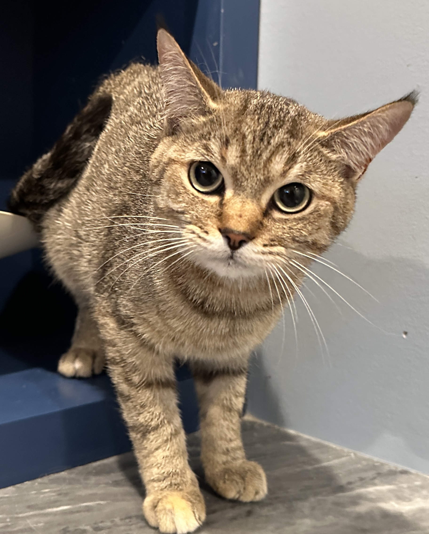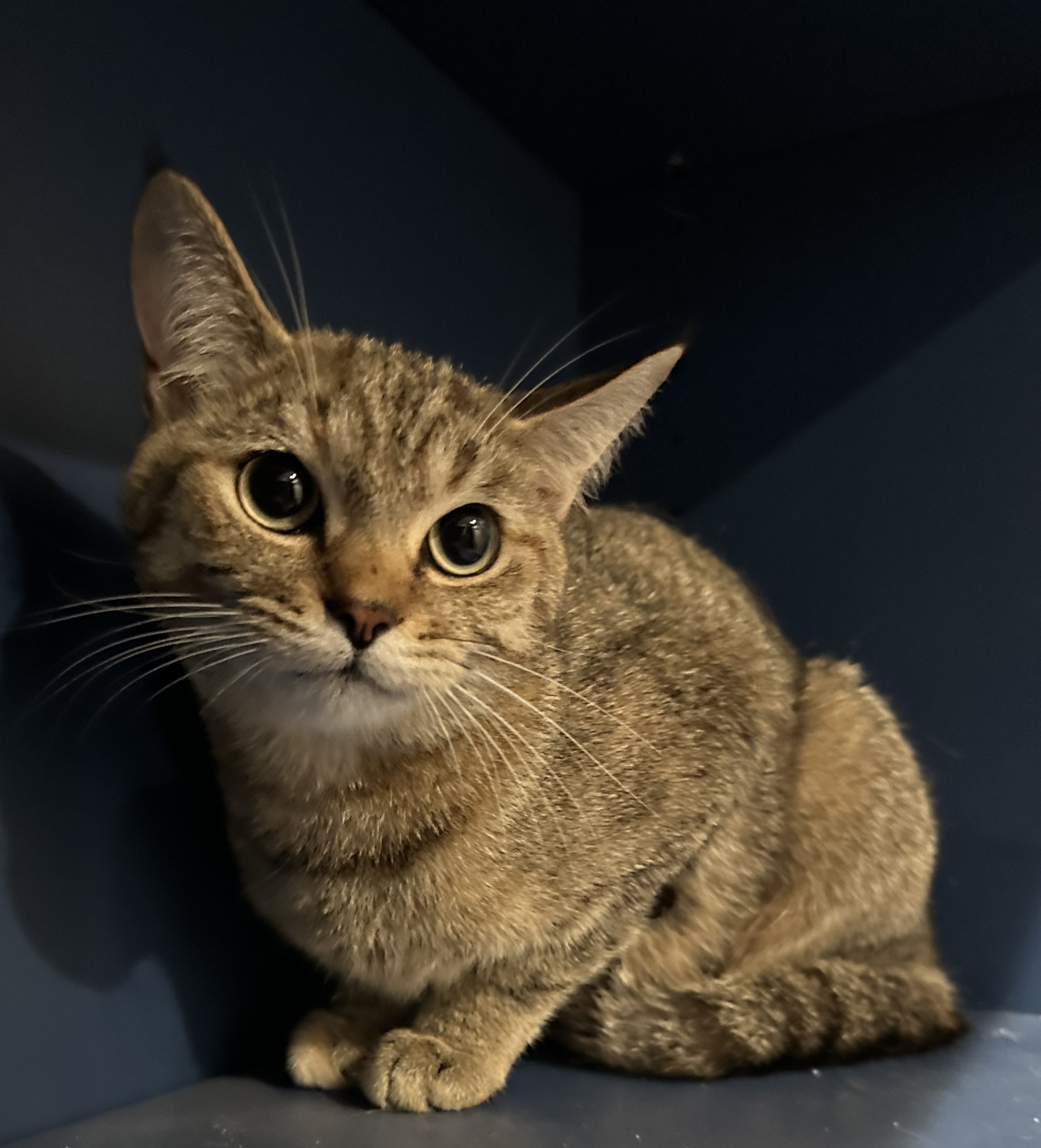 Dusty adores people. She does not mind being picked up and held for affection. She will happily cuddle on your lap and run against you.
