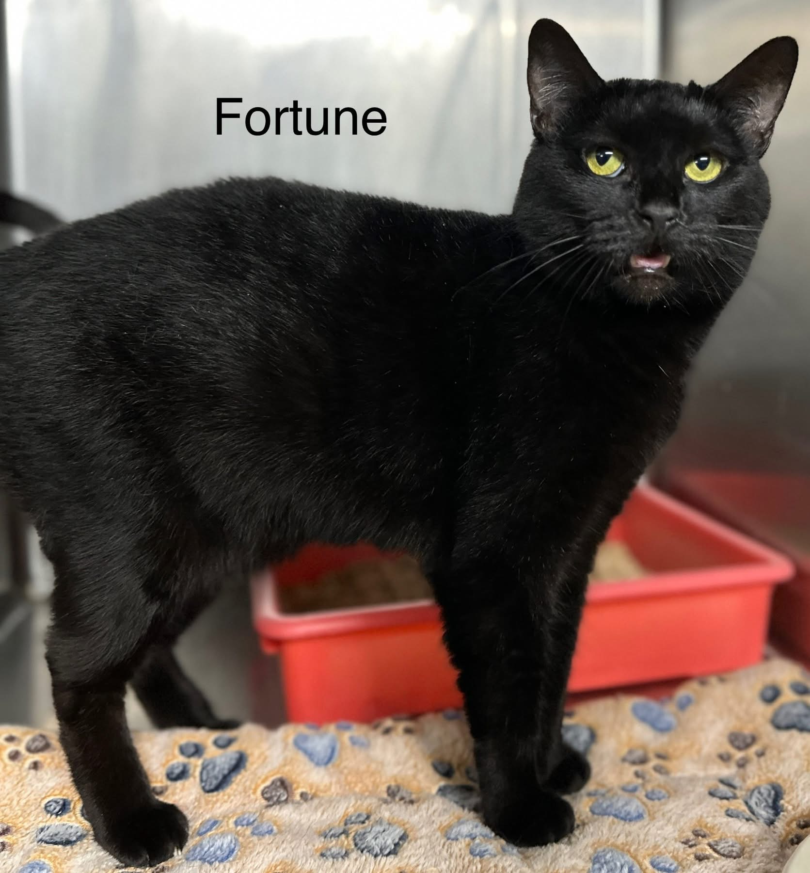 Fortune is a sweet girl. She may take a minute to warm up to people. Once she has become comfortable with you and trusts you, she will love you forever.