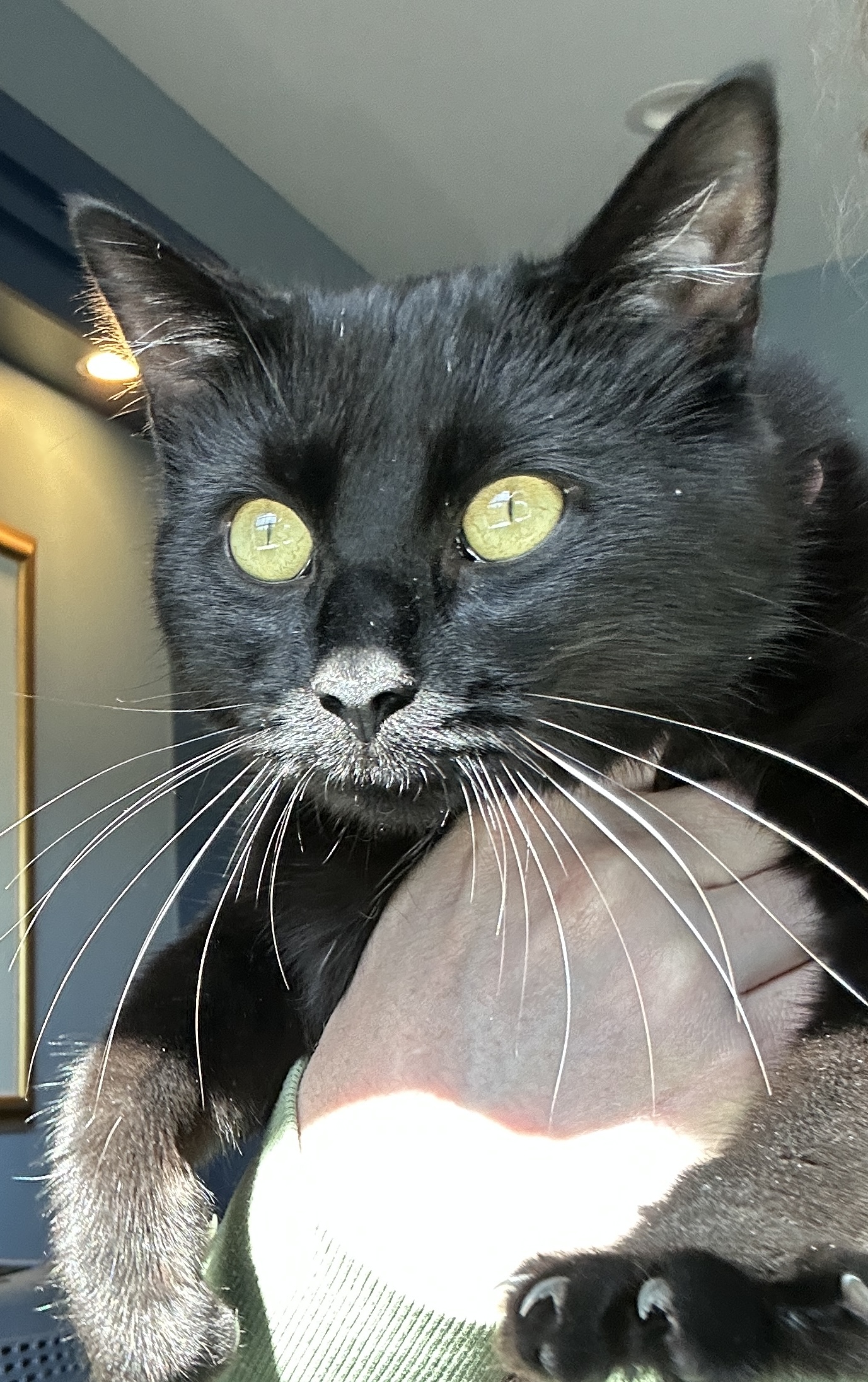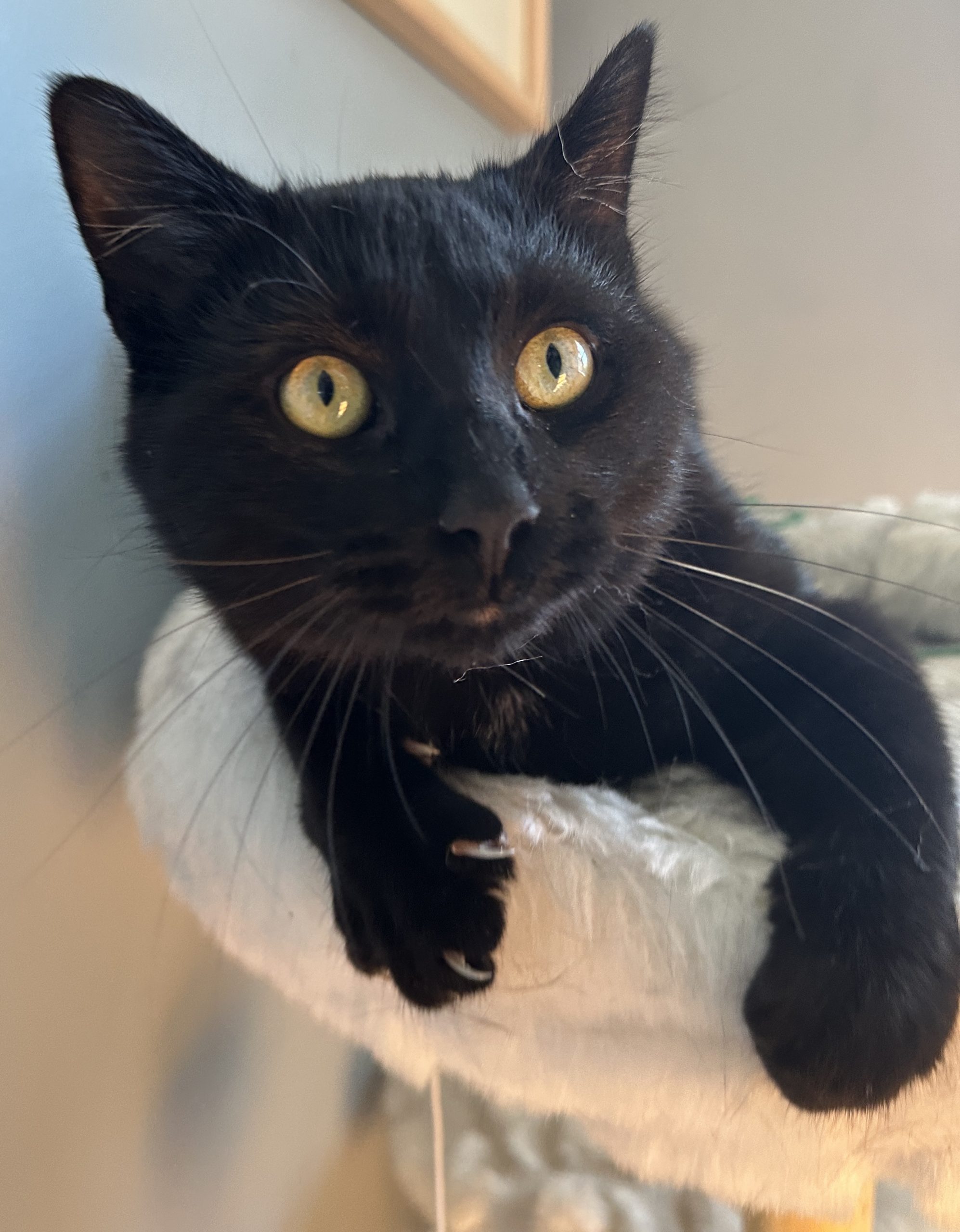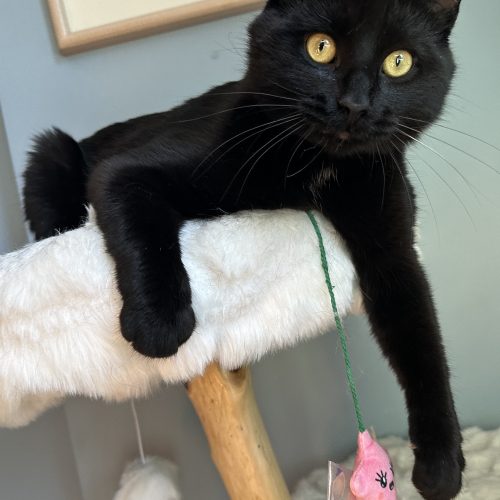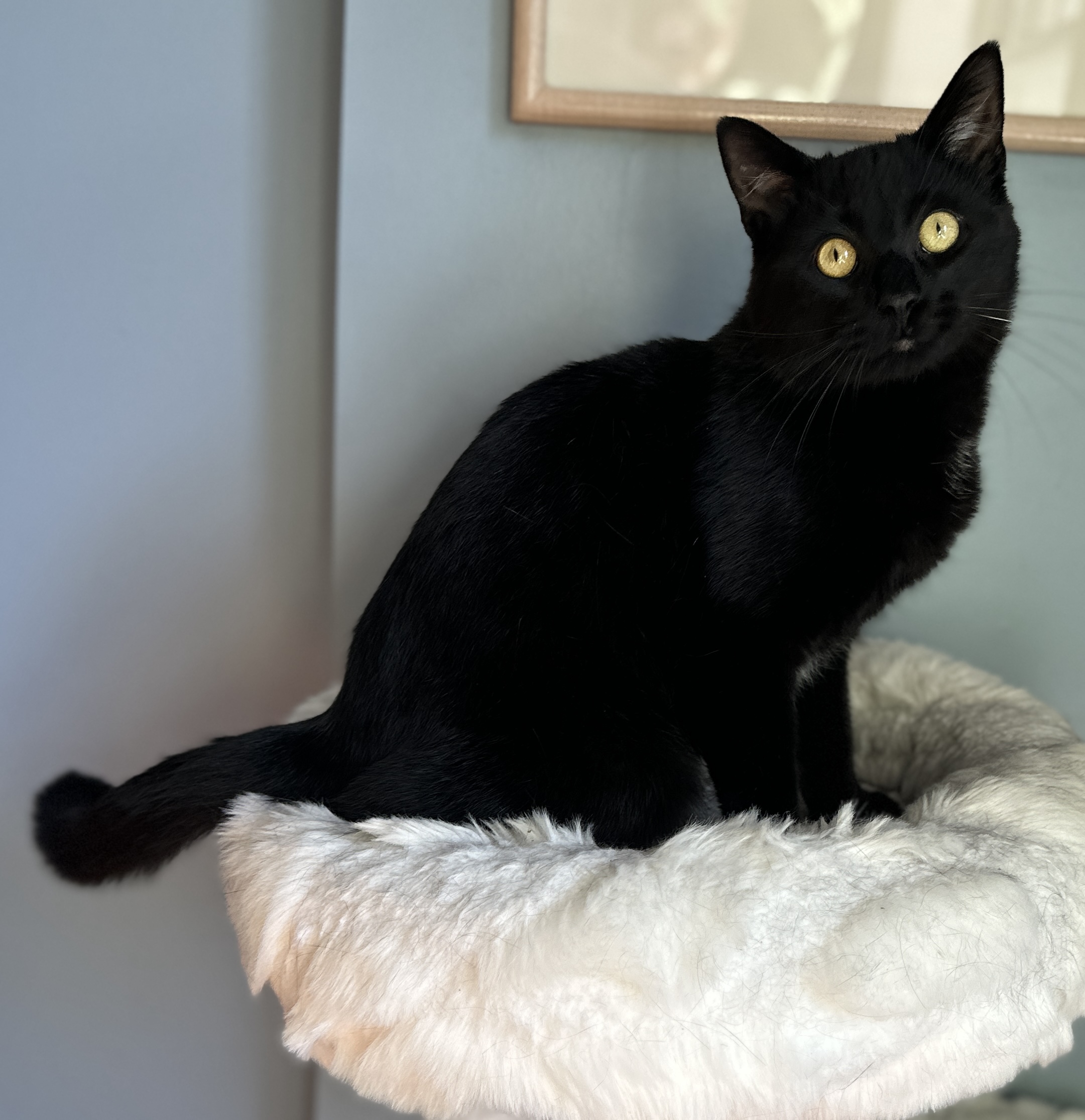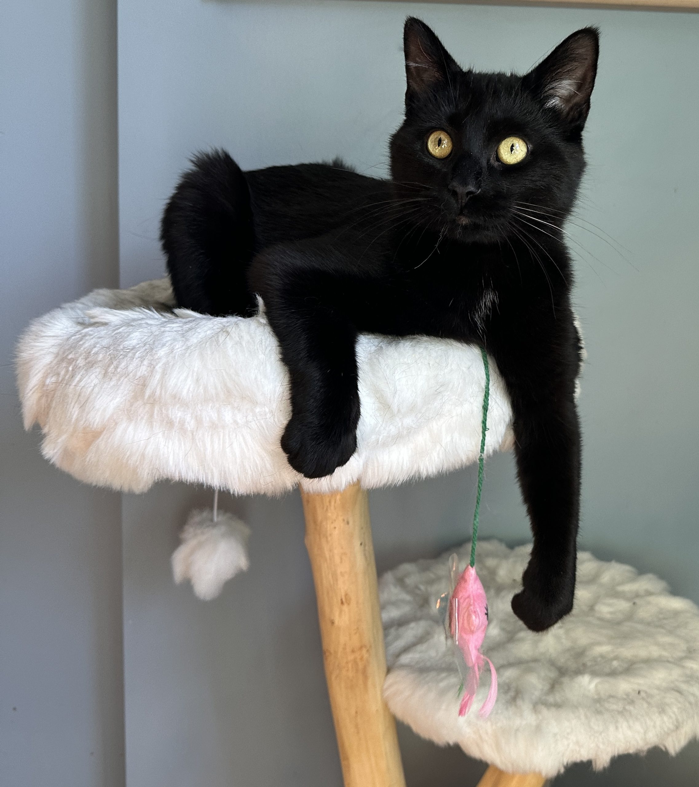 Guava is a little grumpy when meeting new cats after spending his first year outside fighting for resources. Over time he comes around. He may need his own space at first, but this cuddly boy is worth it. He would be a great emotional support cat if you are looking for a constant companion.