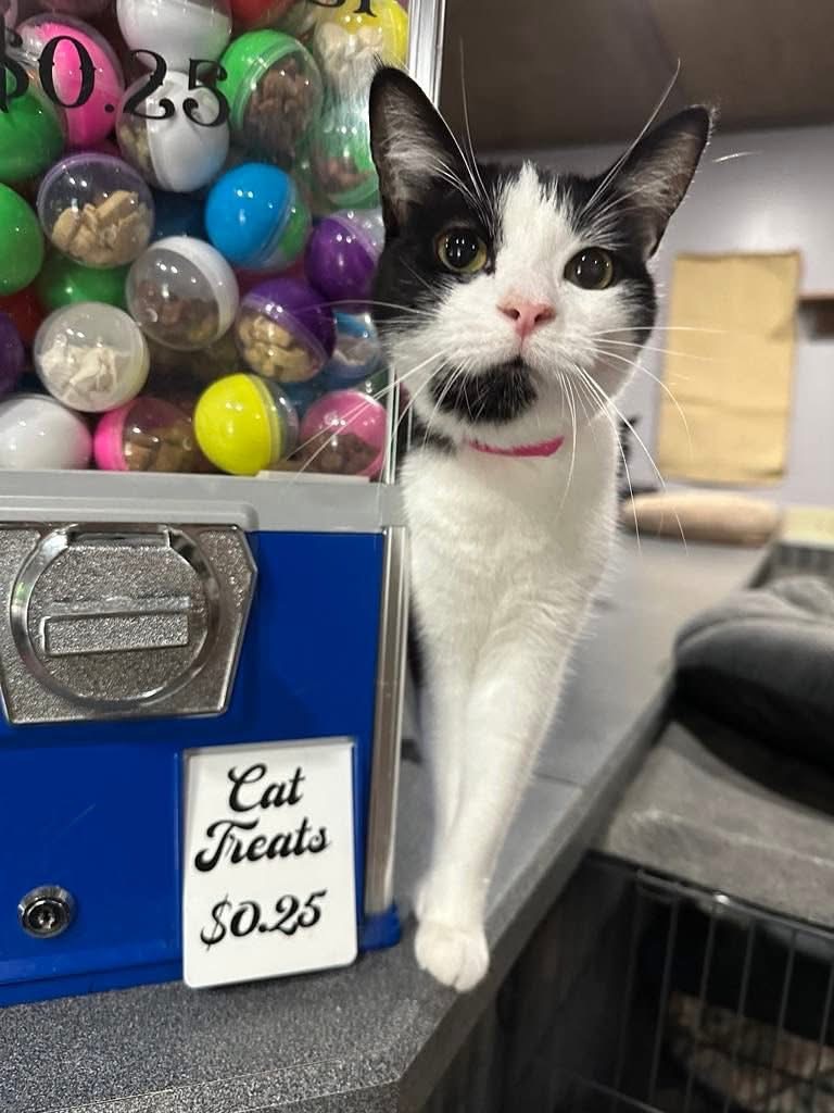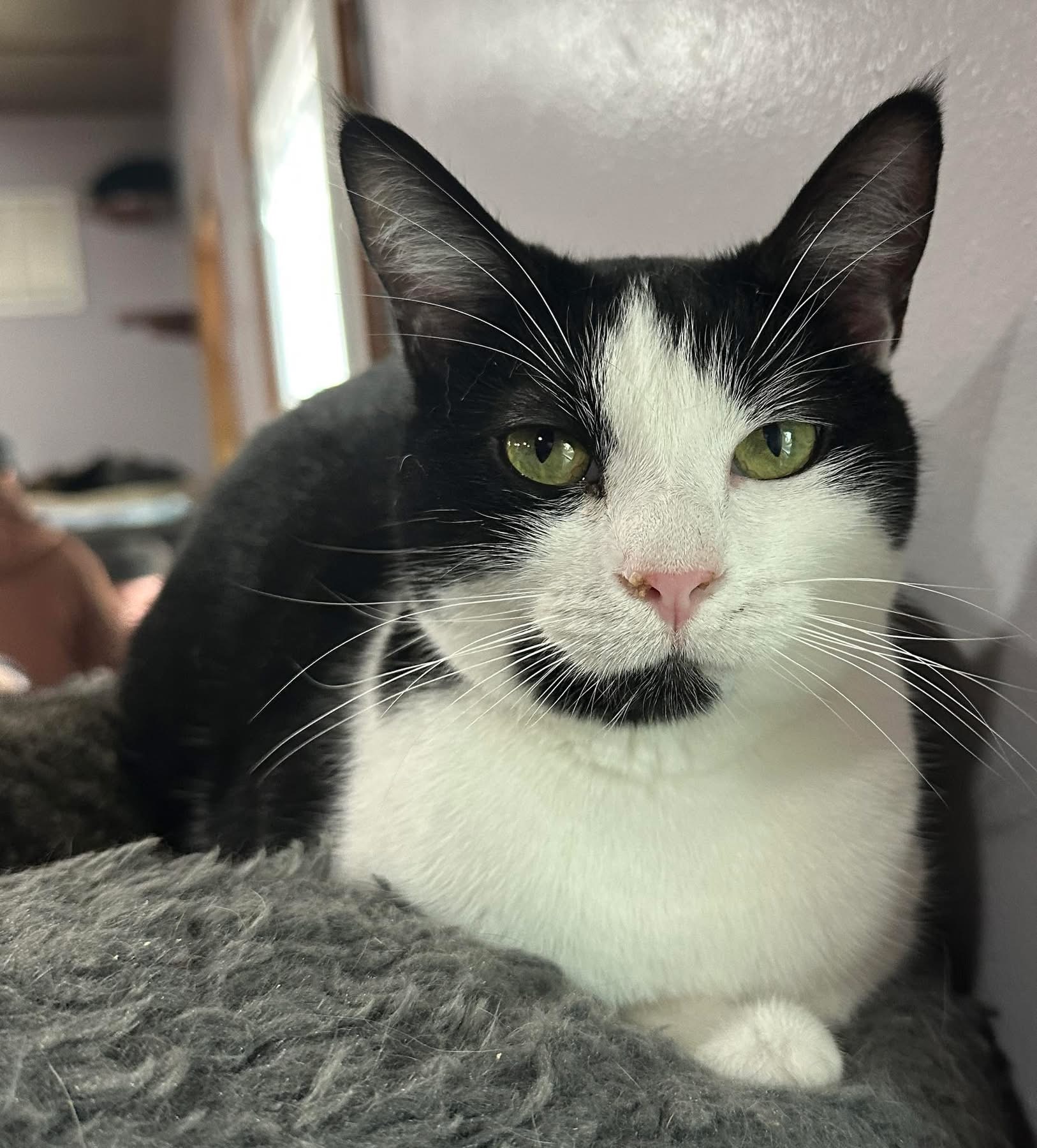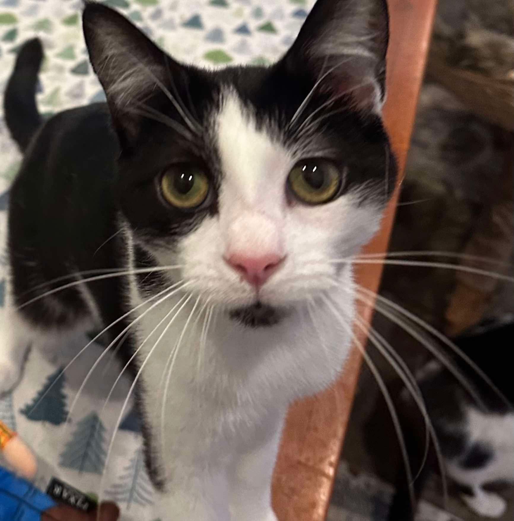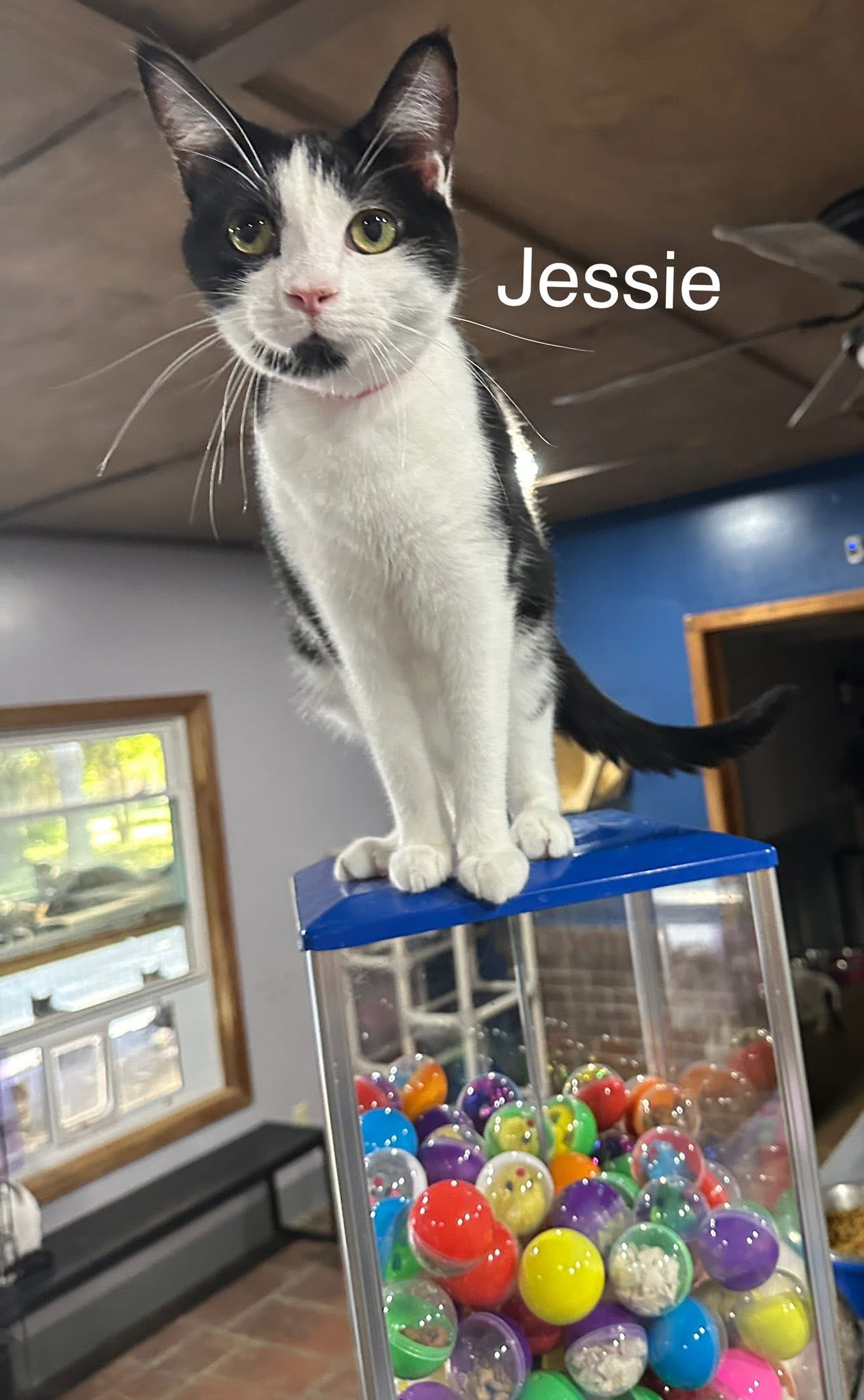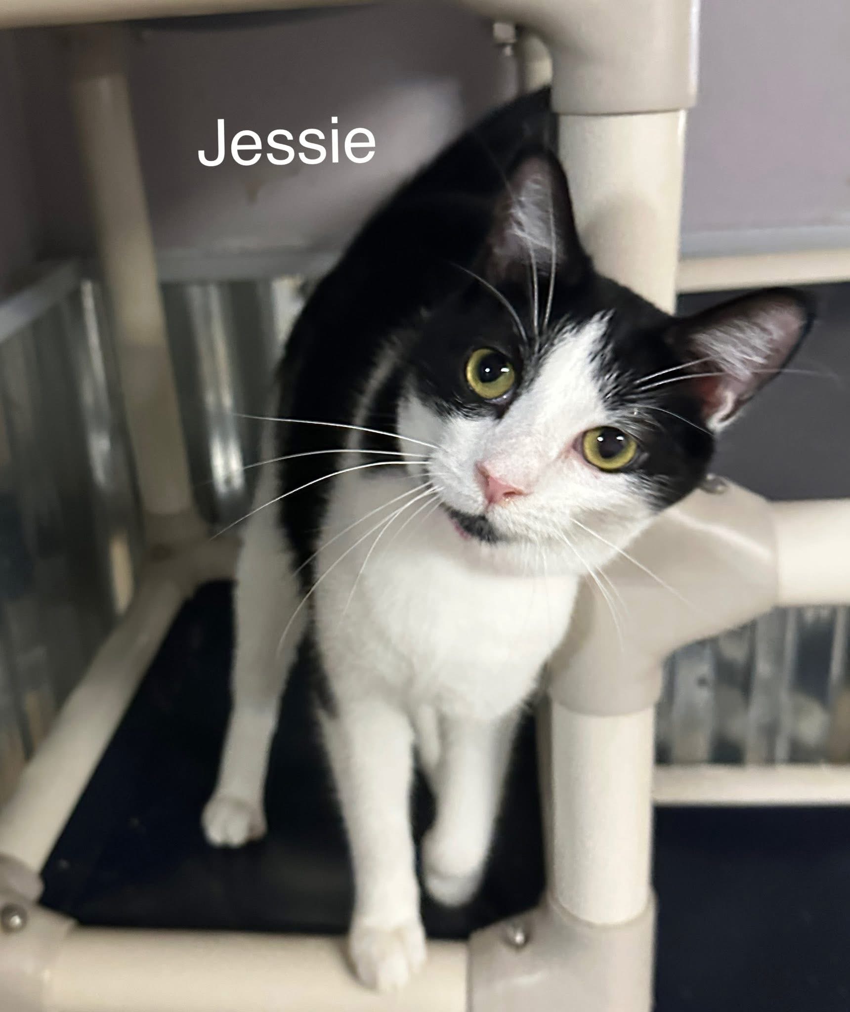 Jessie and her brother, Woody, Came to the sanctuary at seven weeks old. They were very sick with pneumonia and Jessie weighed only 10 ounces. She was literally half the size of her brother. Both kittens eyes were completely matted shut, and every breath sounded like a gurgle They receive plentiful food around the clock care medicine to treat their pneumonia, breathing treatments, several times a day and all the love and affection. It took weeks for them to recover from the pneumonia. It left its mark on both kittens. Jessie’s left eye has a scar from healed ulcer. After a couple months of treatment, they were finally deemed healthy enough to begin vaccines and spay and neuter. Because they suffered severe phenomena at such a young age, they may require additional vetting as they get older. They have proven that they are fighters and will do whatever it takes to survive. They are lovers. They Experience a lot of medical care at the hands of their foster. They are used to being handled and are even compliant when being treated They enjoy love and cuddles and belly, rubs. Jessie is very petite. She takes a minute to warm up to new situations but once comfortable loves cuddles and belly rubs.. She loves dogs and often greets her foster dog friend with nose rubs. Apply for sweet Jessie today