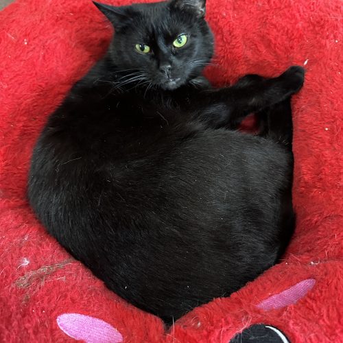 Meet Mellow Yellow. She and her sister, Pinkalicious, came to the sanctuary as shy little kittens. Overtime they’re coming out of their shells, but will need patient people willing to go at their pace. Once they’re comfortable, they will seek you out for love and attention, but it may take them a bit to get comfortable. Consider giving one of these colorful kitties a try.