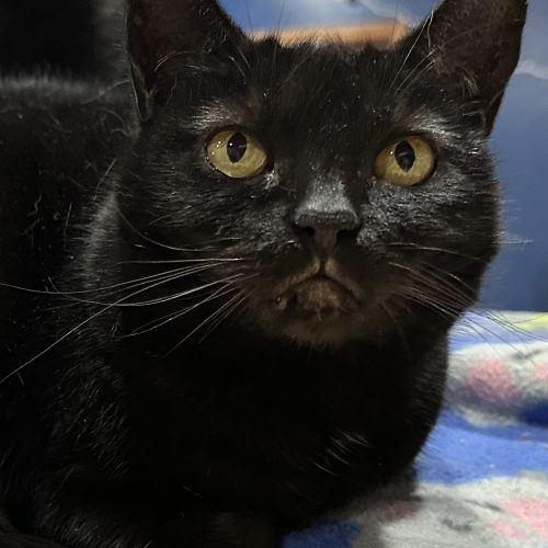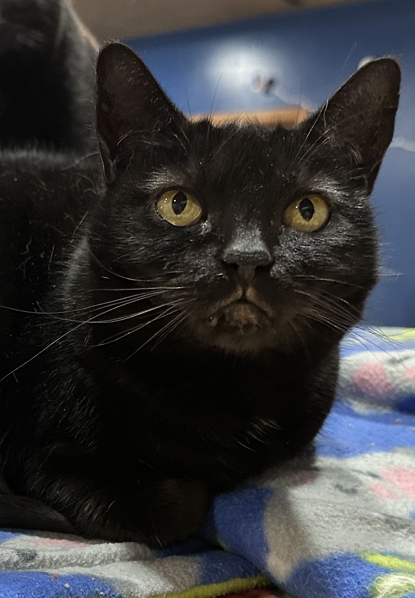 This slick black cat is Monica! Monica is one of the first cats to ever come to our shelter and we’d love to tell you about her!