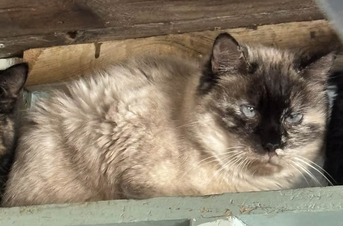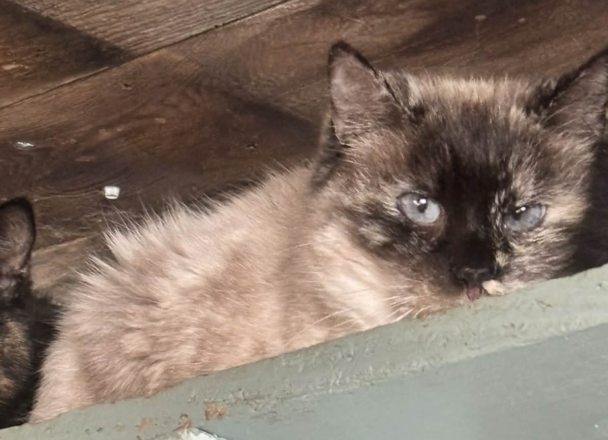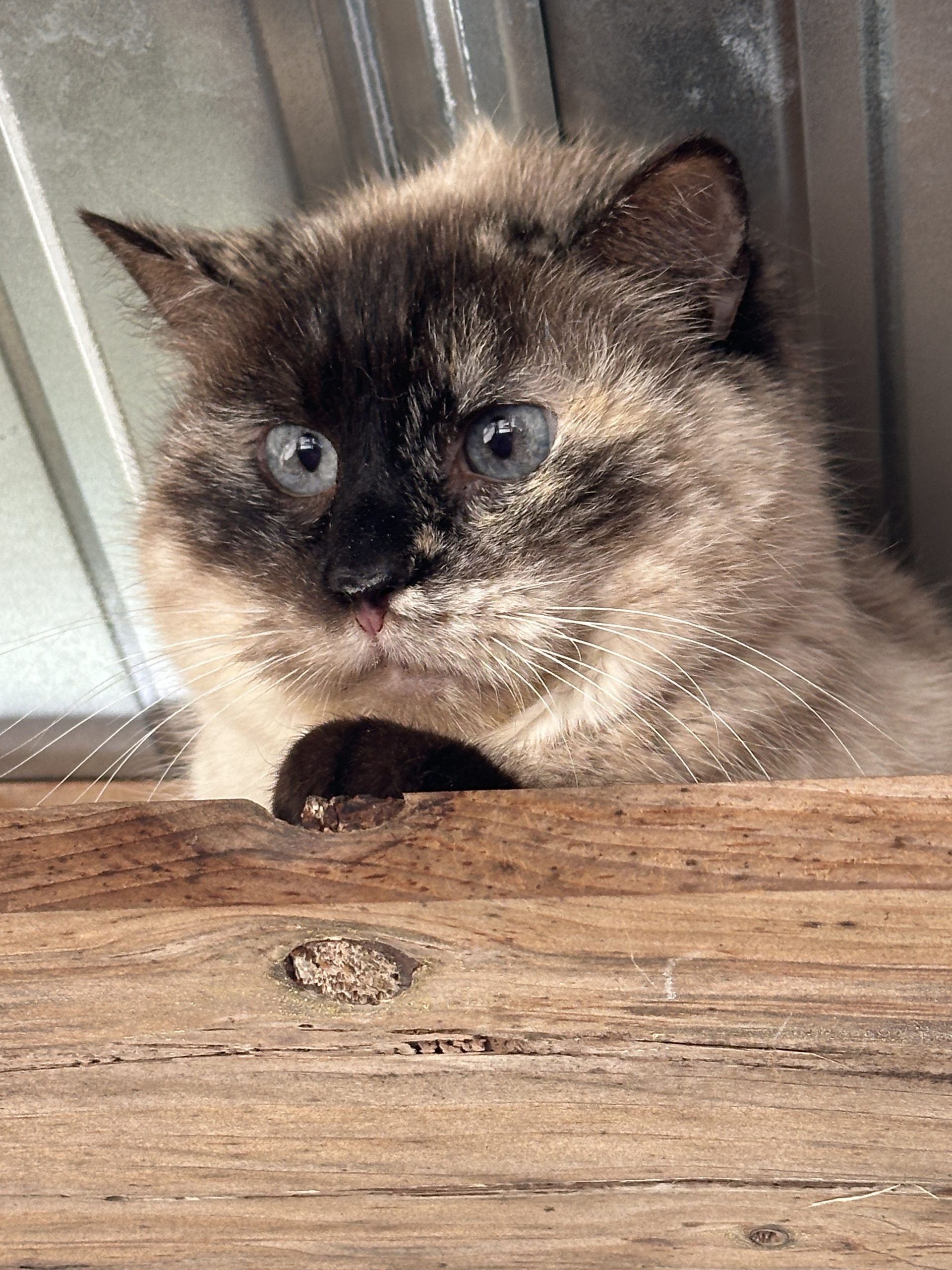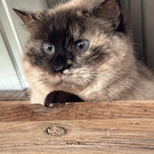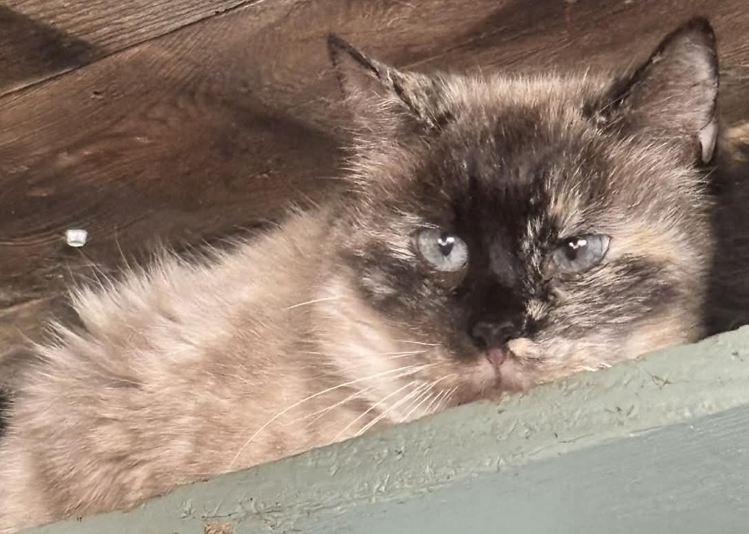 Moxie was a community cat hanging around in Troy. Surprisingly this girl, aged around 6 years was not spayed. We spayed her and she was fully vetted. Moxie is a bit cantankerous and that is because she is mostly blind. She has trouble seeing what is coming at her and reacts as any scared creature would when a big looming shadow eclipses her. She hisses and lashes out with her claws trying the shred anything that comes near her. She often picks a spot where she is comfortable, Usually elevated, Where she feels comfortable and will claim it as her own, only coming out of her hiding spot to use the litter box or have some food or water. We know that there is a sweet kitty inside of Moxie, but she has many reasons to be skeptical and will need ample time to trust anyone. She is not available for adoption to the general public. She will need very special care from very experienced people. She needs the right place where she can come around to trust in her own time and won’t be pushed outside of her comfort zone. It will take her several months if not longer to acclimate to new situation