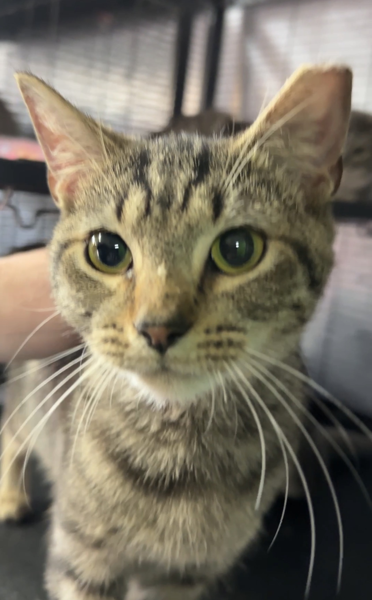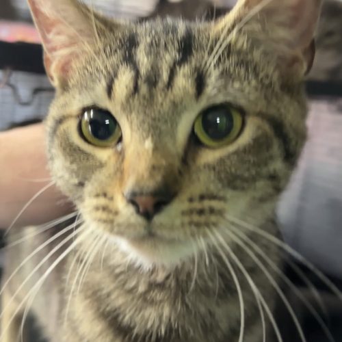 This beautiful girl is constantly entertained by everything around her. She is constantly observing her surroundings when shes not exploring all over the place. She loves to play and has a beautiful purr when she is cuddling. Her favorite treats are churus and she goes wild for them.