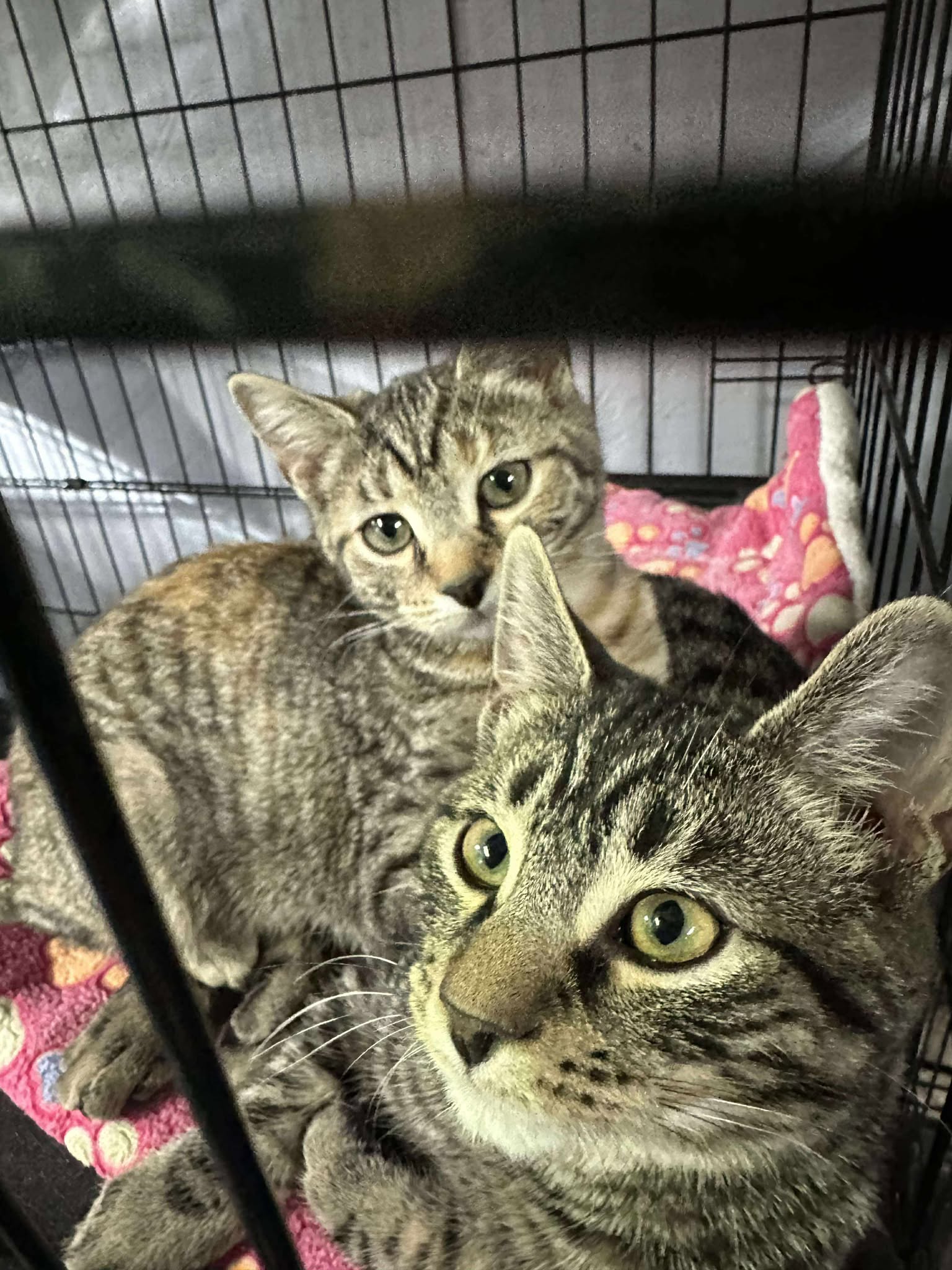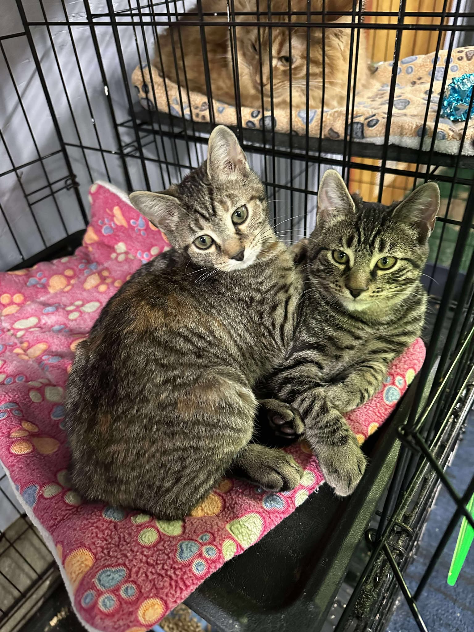 Pierogi is a very sweet playful kitten. Loves playing & will scale the front of the cage for attention. Loves the company of Kolacki & scaling the cage!