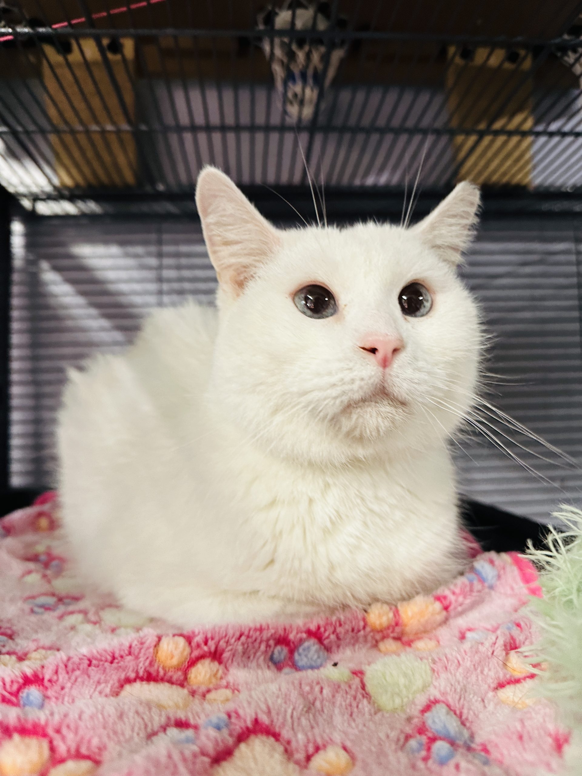 She has been around older children, geriatric dogs and a multitude of cats. She needs to be introduced slowly and will let other animals know her boundaries by hissing and swatting.