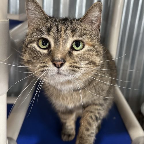 Sparky and her brother, Spanky, were adopted into a loving home after being found outside as a kitten. Unfortunately her aging human began experiencing some dementia and was no longer able to care for her beloved cats. They had a rough few months where they were being fed some unconventional foods by their aging owner and then several months of living alone with a caretaker stopping in a few days a week.